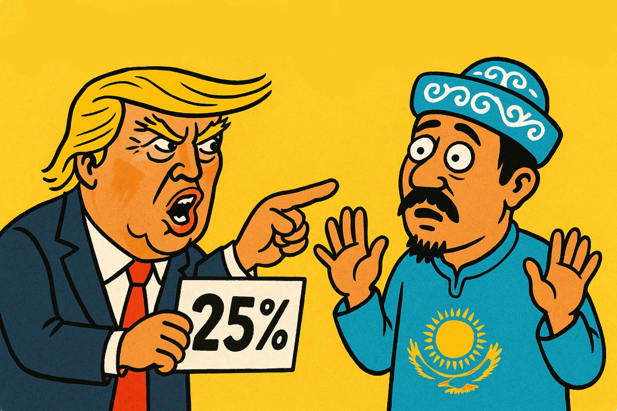Когда The New York Times начинает текст со слов «торговые эксперты в недоумении», значит, кто-то в Вашингтоне действительно перегнул палку. Казахстан попал в список стран, против которых вводится 25-процентная пошлина на экспорт. Пауза. Перечитываем. Казахстан? Не Россия. Не Китай. Даже не Турция. Мы. Мы, которые тихо стояли у стенки и старались не отсвечивать. Но кого это волнует, когда в Овальном кабинете снова Дональд Трамп?!
