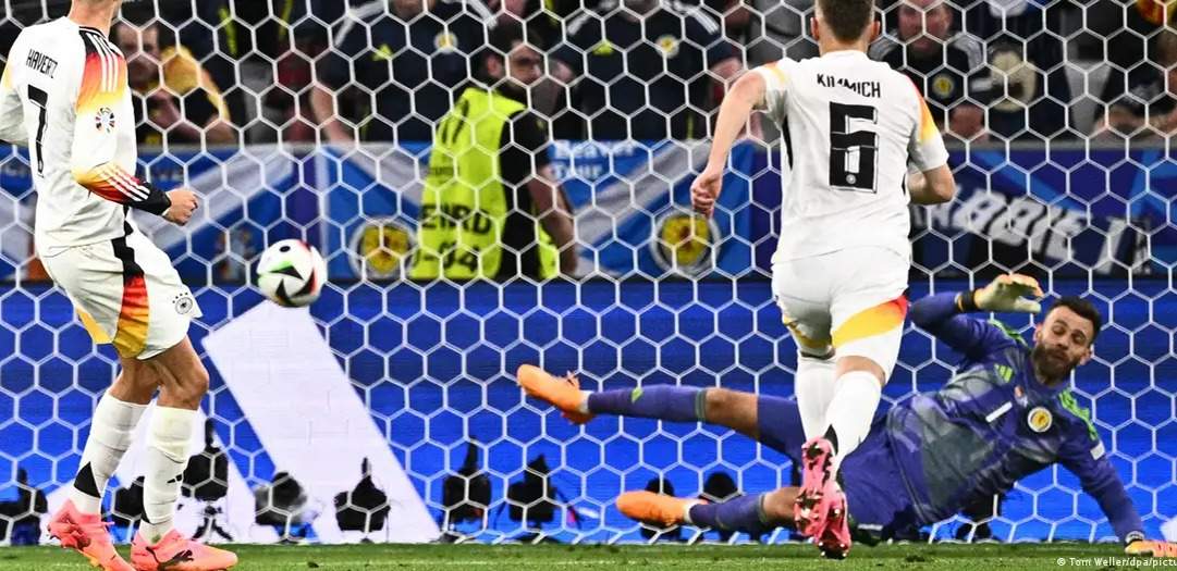 Футбольная сборная Германии удачно стартовала в проходящем в ФРГ чемпионате Европы, победив в матче открытия европейского первенства в группе А соперников из Шотландии с разгромным счетом 5:1. Об этом передает агентство Kazinform со ссылкой на DW.