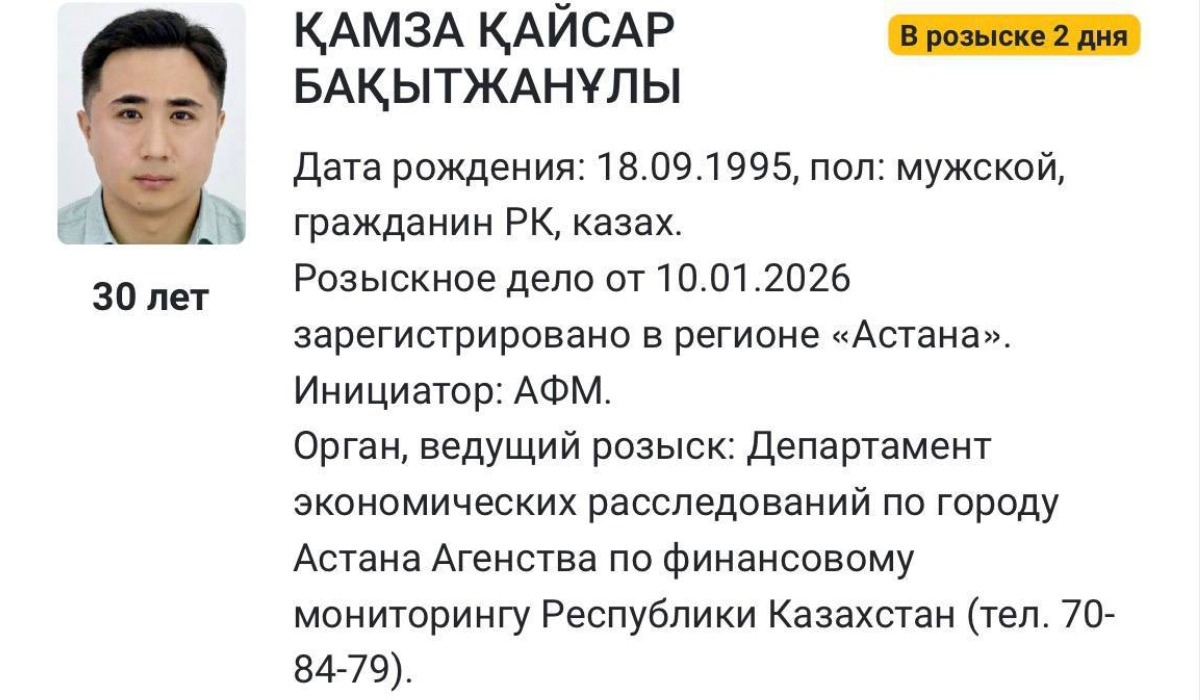 Агентство по финансовому мониторингу объявило в розыск казахстанского блогера Кайсара Камзу, у которого 2,4 миллиона аудитории в Instagram.