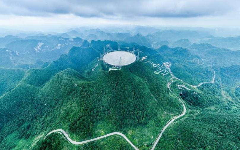 Расположенный в естественной глубокой и округлой карстовой впадине в провинции Гуйчжоу на юго-западе Китая телескоп FAST официально начал работать в январе 2020 года. Считается, что это самый чувствительный радиотелескоп в мире.