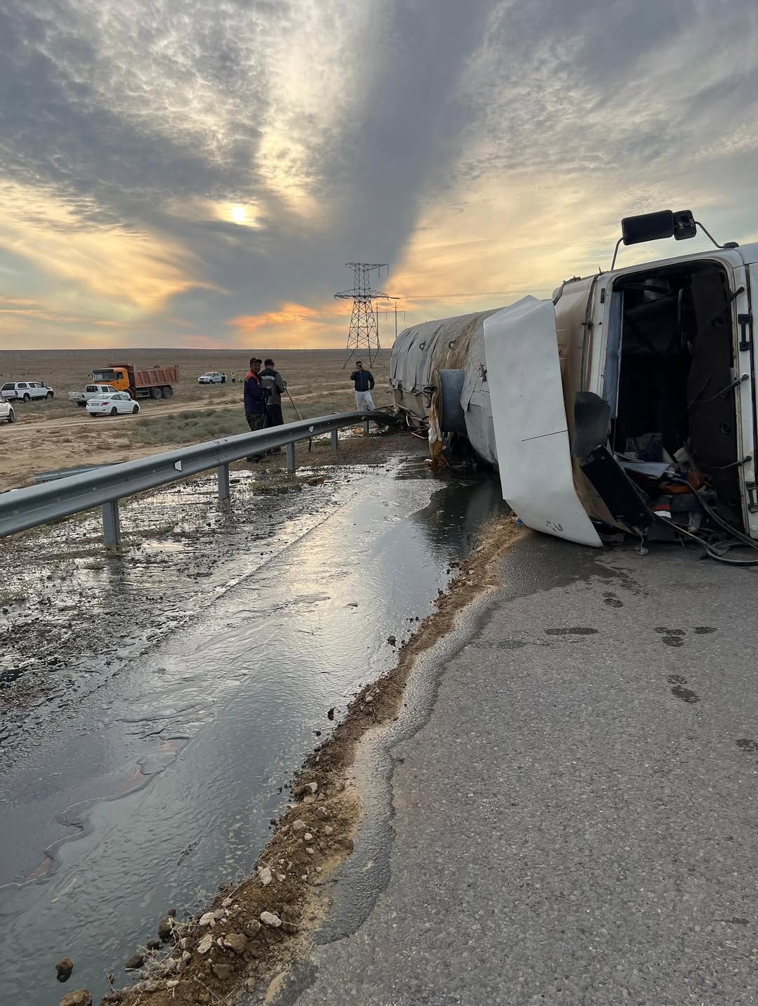 Астана. 30 қыркүйек. BM.KZ – 29 қыркүйек күні Ақтау – Жаңаөзен тас жолының 23-шақырымында жол апаты болып, мұнай өнімдерін тасымалдаған жүк көлігі аударылды. Салдарынан жерге мұнай төгілген.