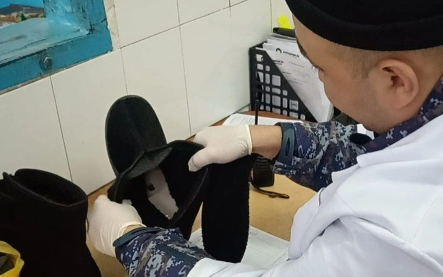2005 жылғы азамат изоляторда тергеліп жатқан танысына азық-түлік әкелген. Мекеме қызметкерлері сәлемдемені тексеру барысында арасына салынған қысқы аяқ киімді көреді.