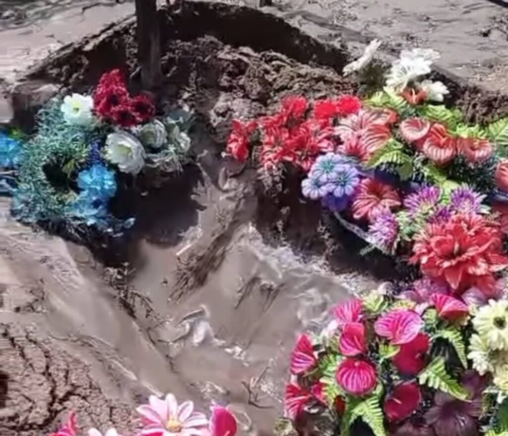 Жетісу облысының Сарқан қаласында православ христиандарының зираты тағы да су астында қалды, деп хабарлайды Baimedia.kz.