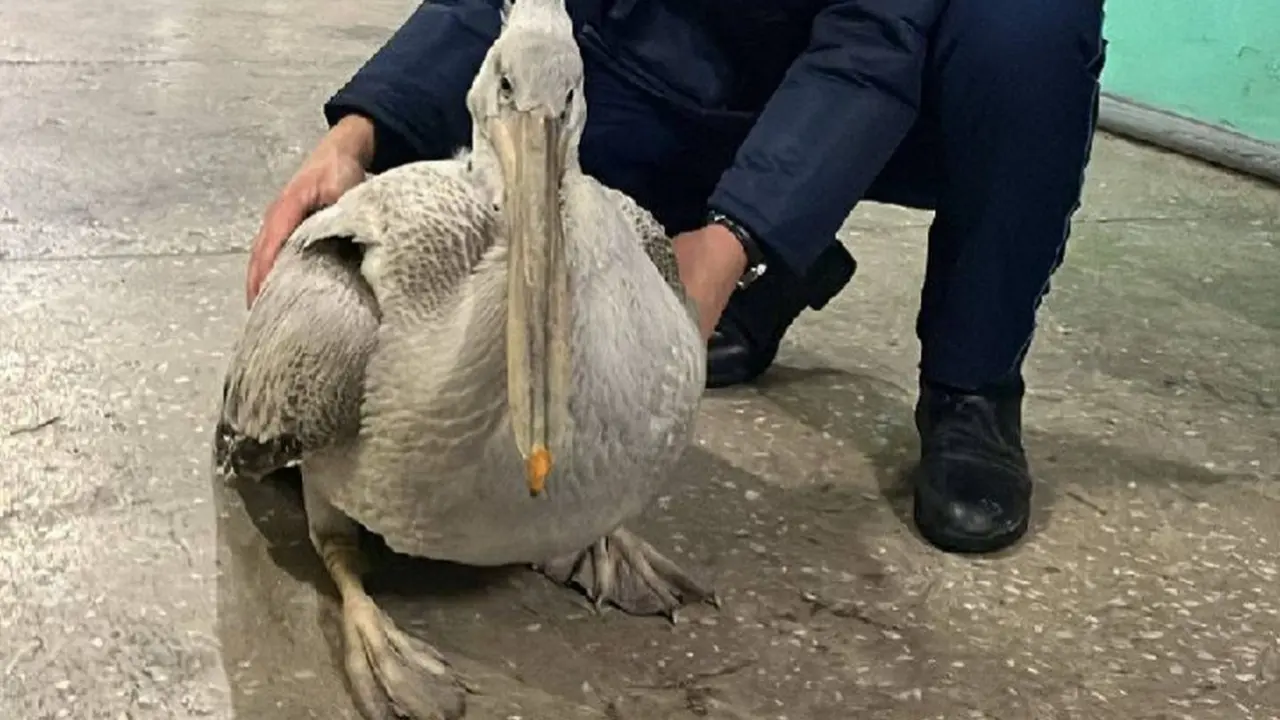 Редкого краснокнижного пеликана спасли в Семее. О необычной находке на острове Бейбитшилик жительница города сообщила местной журналистке, которая передала информацию в пресс-службу департамента полиции области Абай.