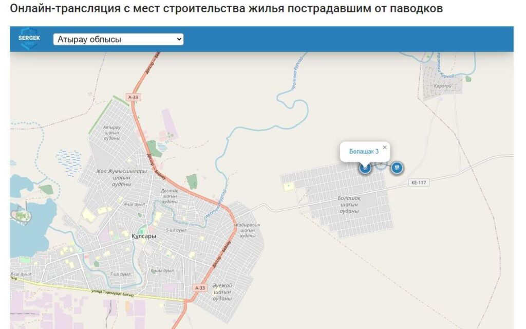 Для доступа к геопорталу нужно зайти на сайт — онлайн-трансляция с мест строительства жилья пострадавшим от паводка — Атырауская область — город Кульсары️ — микрорайон Болашак️.