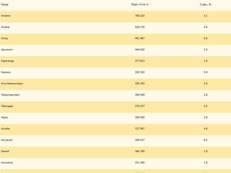 — Уральск, Усть-Каменогорск, Шымкент: +3.4 %.