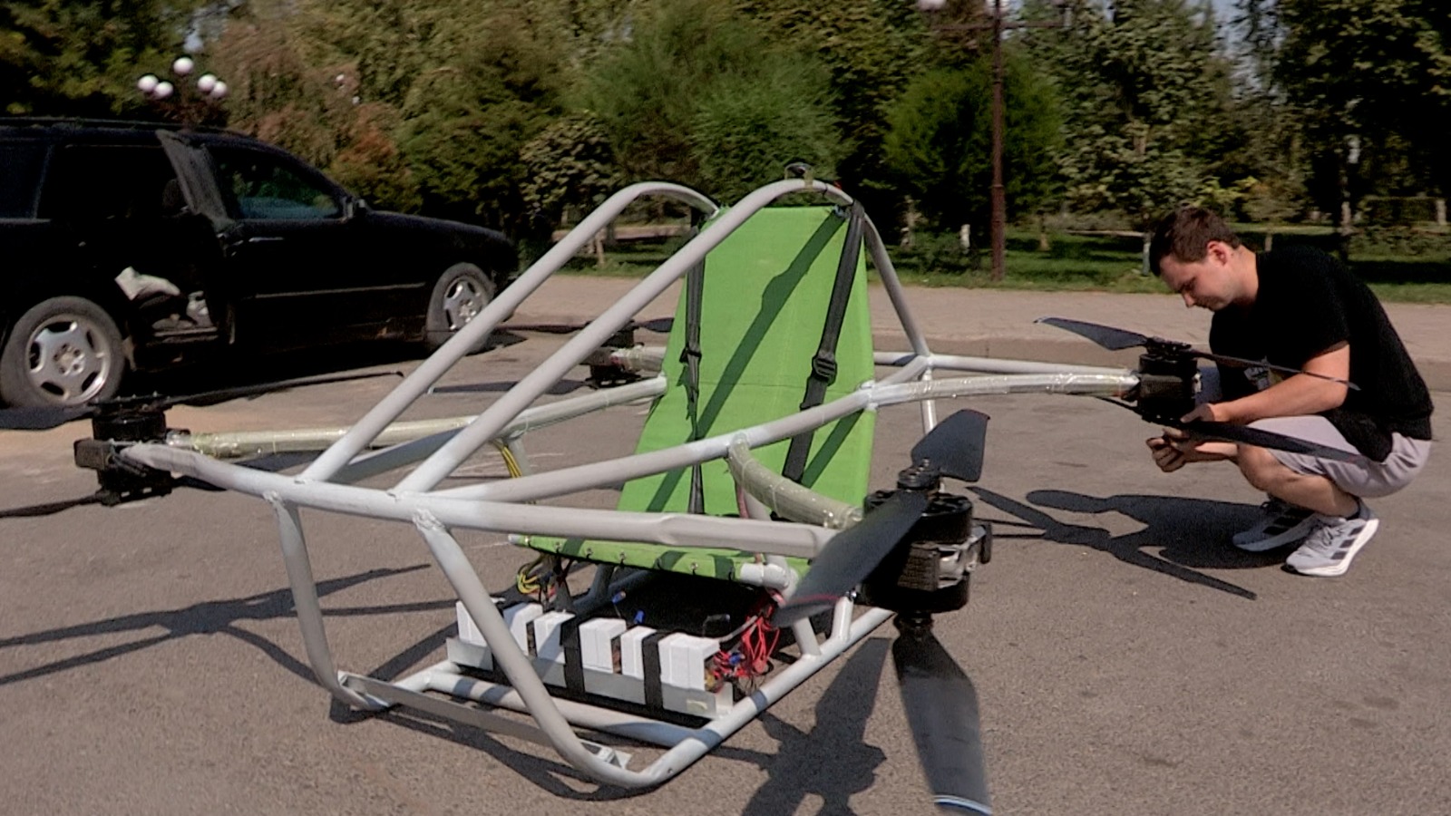 Житель Шымкента Филипп Герасимов впервые представил публике результат своей трёхлетней работы. Изобретатель собственными руками собрал коптер и доставил его на автомобиле к парковке в парке Независимости, где устроил демонстрацию. По словам мастера, это устройство — не просто летательный аппарат, а транспорт будущего.