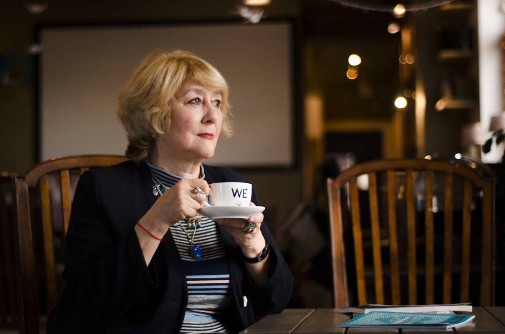 Казахский язык я начинала учить в своей жизни, наверное, раз пять. Первый раз начала в 18 лет, когда приехала в аул и поняла, что я вообще ничего не понимаю. Ни слова. Потом, вернувшись в Алма-Ату, опять стала забывать. Вот так несколько раз. За последнее время из серьезного обучения я прошла марафон казахского языка, уроки казахского языка в 2019 году. Три месяца ежедневно я хорошо занималась. Сейчас моя дочь Суинбике снимает фильм «Мамбет. Тіл мәселесі», и мы очень углубилась в казахский язык. Мы смотрим фильмы на казахском, мы переписываемся қазақша. Конечно, сейчас мой казахский гораздо лучше, но все равно мне легче писать, чем говорить. У меня есть акцент, я стесняюсь своего русского акцента.