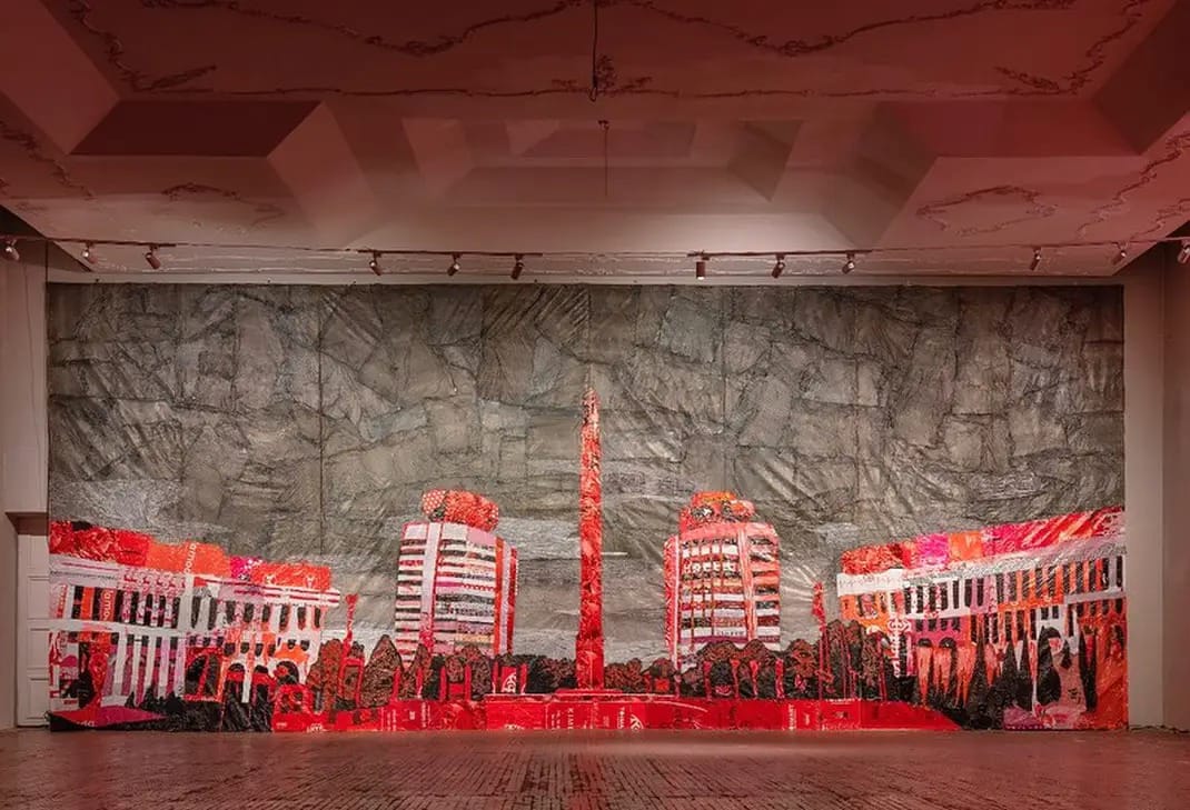 Январские события, получивший в новейшей истории Казахстана название «Қанды Қаңтар», продолжают будоражить сердца людей спустя четыре года даже за пределами Казахстана. Этой зимой тема Қаңтара органично вписалась в идею VI Киевской биеннале «Ближний Восток, Далёкий Запад» в Варшаве. Здесь знаменитая казахстанская художница Сауле Сулейменова представила свою легендарную работу «Небо над Алматы. Қанды каңтар». Это монументальное полотно выполнено из целлофановых пакетов и отражает потрясения января 2022 года.