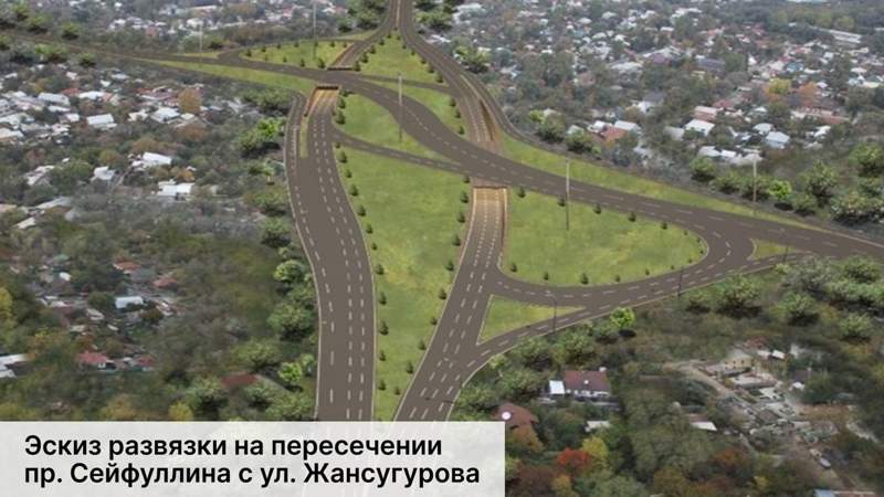 В начале этого года сообщалось, что в этом году планируют завершить строительство транспортных развязок на пересечении проспекта Сейфуллина и улицы Жансугурова и на пересечении улиц Саина — Акын Сара.