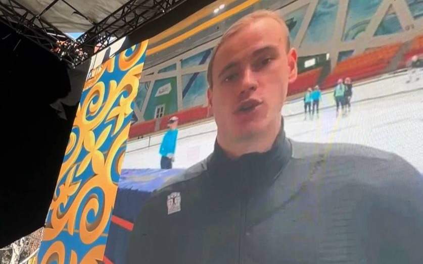 Спортсмен, выступающий в Астане, выразил свои пожелания через LED экран.
