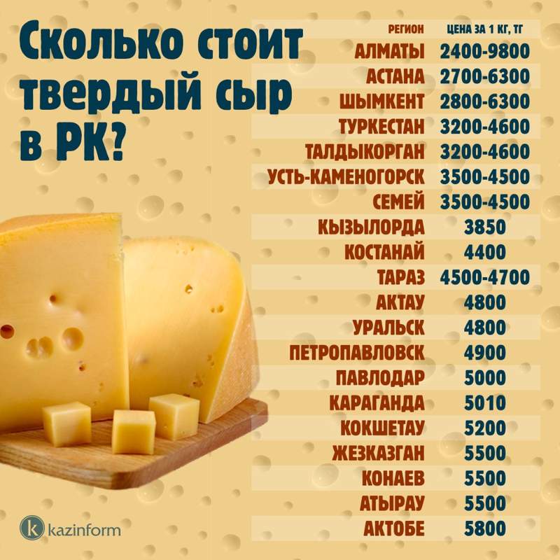 Усть-Каменогорск и Семей: здесь цена на сыр стартует от 3500 тенге, более дорогой вариант натуральных видов начинается от 4500 тенге и выше.