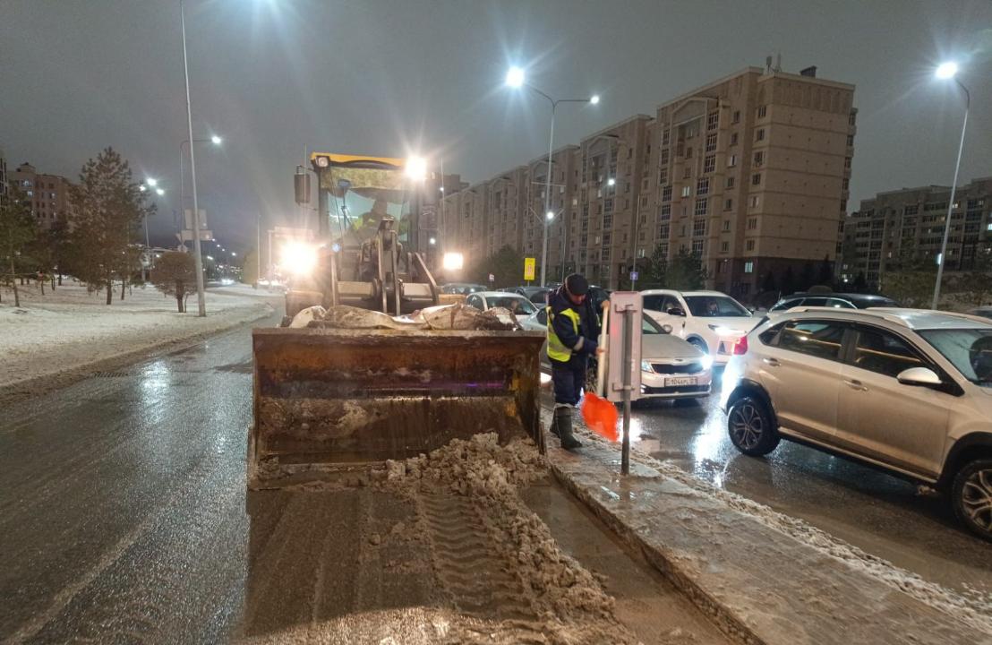 Свыше 1 100 единиц спецтехники убирали снег этой ночью в Астане