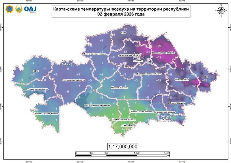 Астана. 2 февраля. BM.KZ – Штормовое предупреждение объявлено в республике.