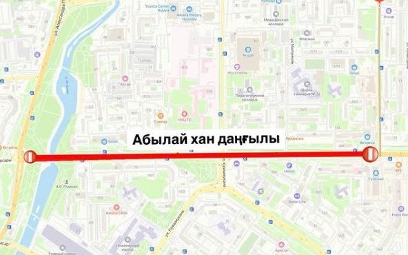 При этом движение автотранспортных средств в сторону улицы Манаса будет полностью перекрыто, а в направлении улицы А. Пушкина — открыто.