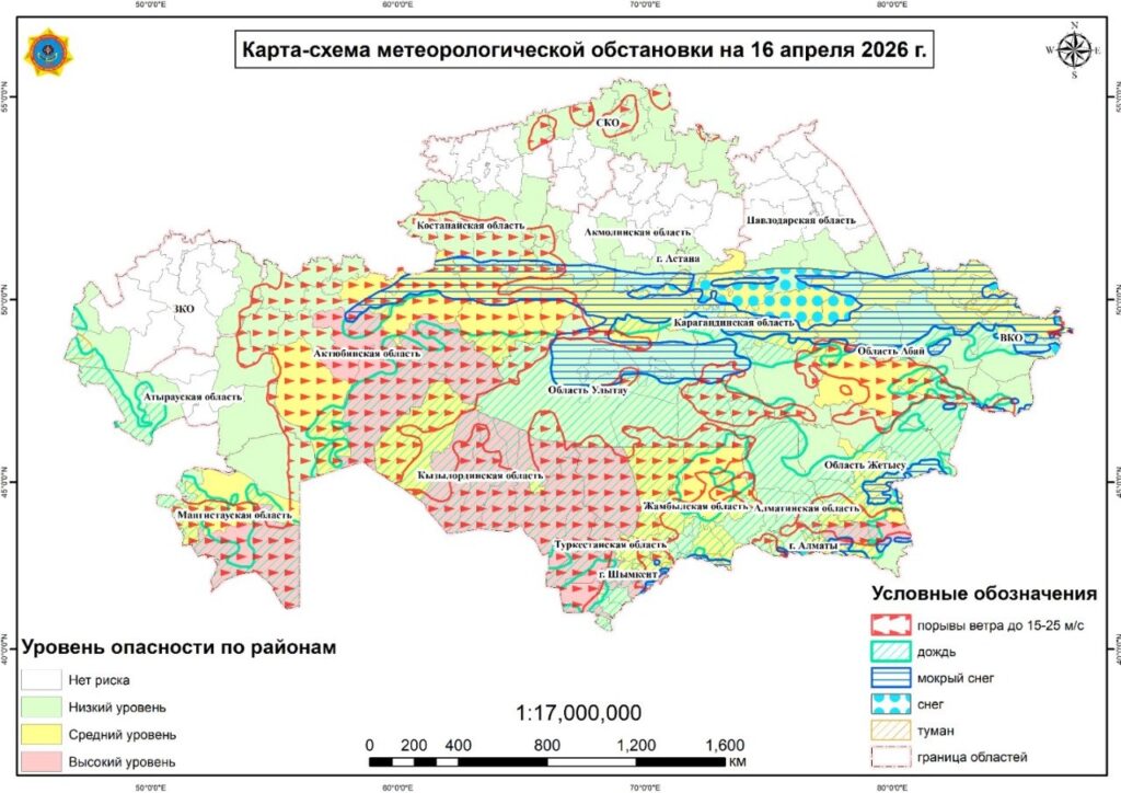 Астана. 16 апреля. BM.KZ – Прогноз погоды на сегодня объявил Казгидромет.