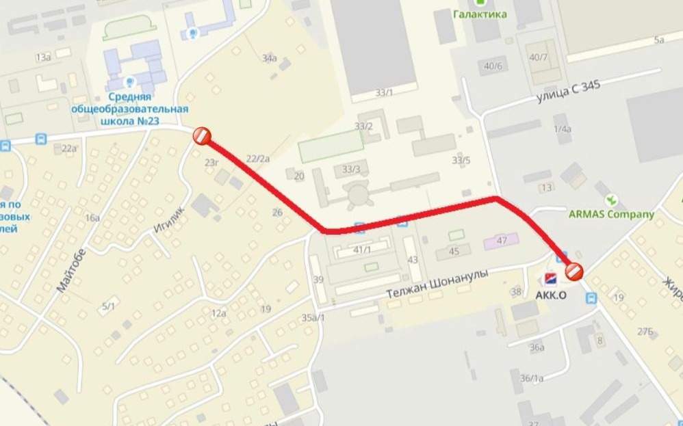 В связи с проведением ремонтных работ, 10 — 12 июня текущего года будет полностью перекрыт участок улицы Игилик от ул. Жанажол до ул. Тайбурыл.